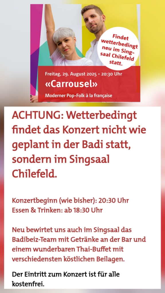 Konzert NEU im Singsaal Chilefeld (statt in der Badi)